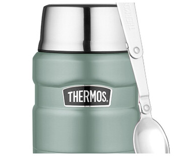 Deze grote Thermos voedselcontainer houdt 710 ml voedsel 9 uur warm of 12 uur koud. De King food jar wordt niet nat aan de buitenkant en voelt ook niet warm aan. De dop sluit de food jar 100% lekdicht af en de geïsoleerde top kun je gebruiken als kommetje om uit te eten.